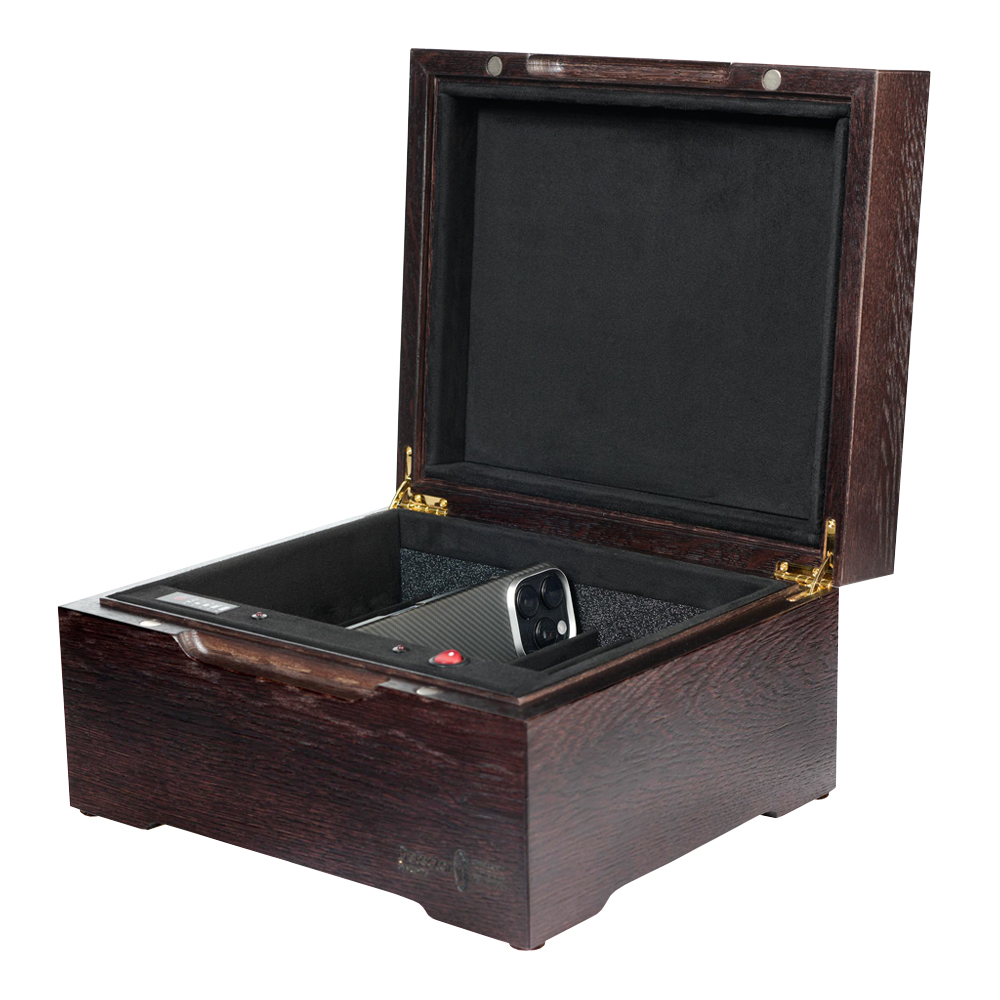Использование акустического сейфа простое: достаточно поместить смартфоны в отсеки, включить помеху переключателем на передней панели и закрыть крышку – ваши телефоны надежно защищены. Встроенные неодимовые магниты обеспечивают плотное прилегание крышки без дополнительных защелок. Зарядка устройства осуществляется либо через проводной адаптер из комплекта, либо беспроводным способом.