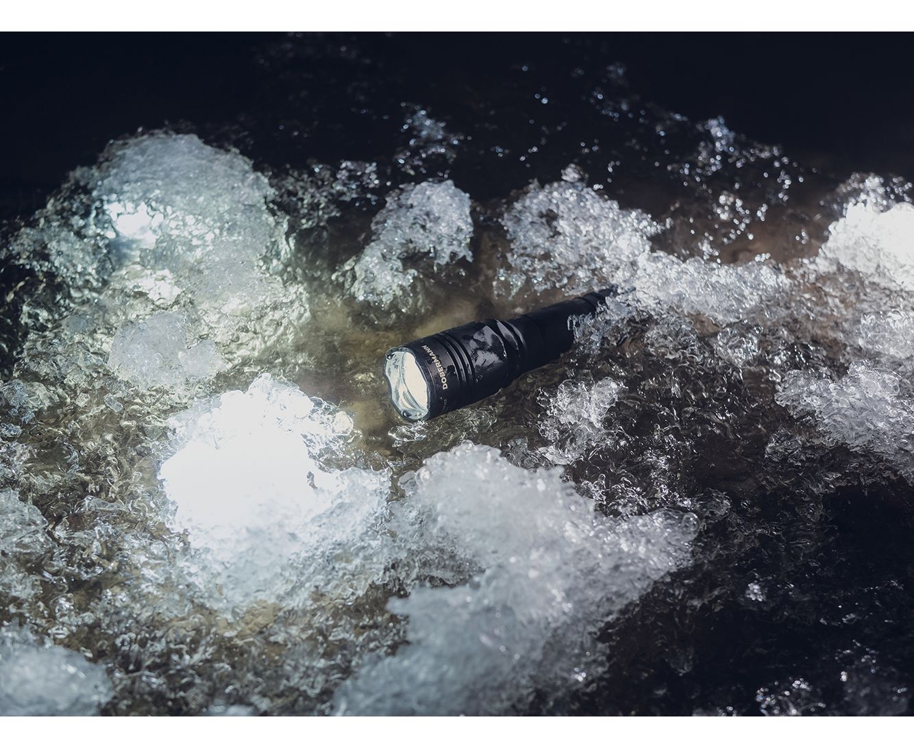 - Полная защита от воды, грязи и пыли по стандарту IP68 — фонарь продолжает работать даже после погружения на глубину 25 метров. Выдерживает падение с 10 этажа.
