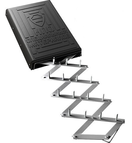 - В нерабочем состоянии заграждение трансформируется в компактный пенал, оснащенный ручкой для переноски;