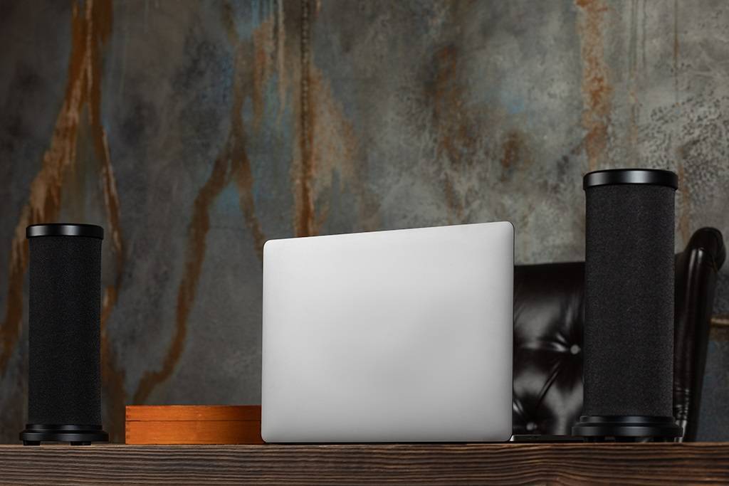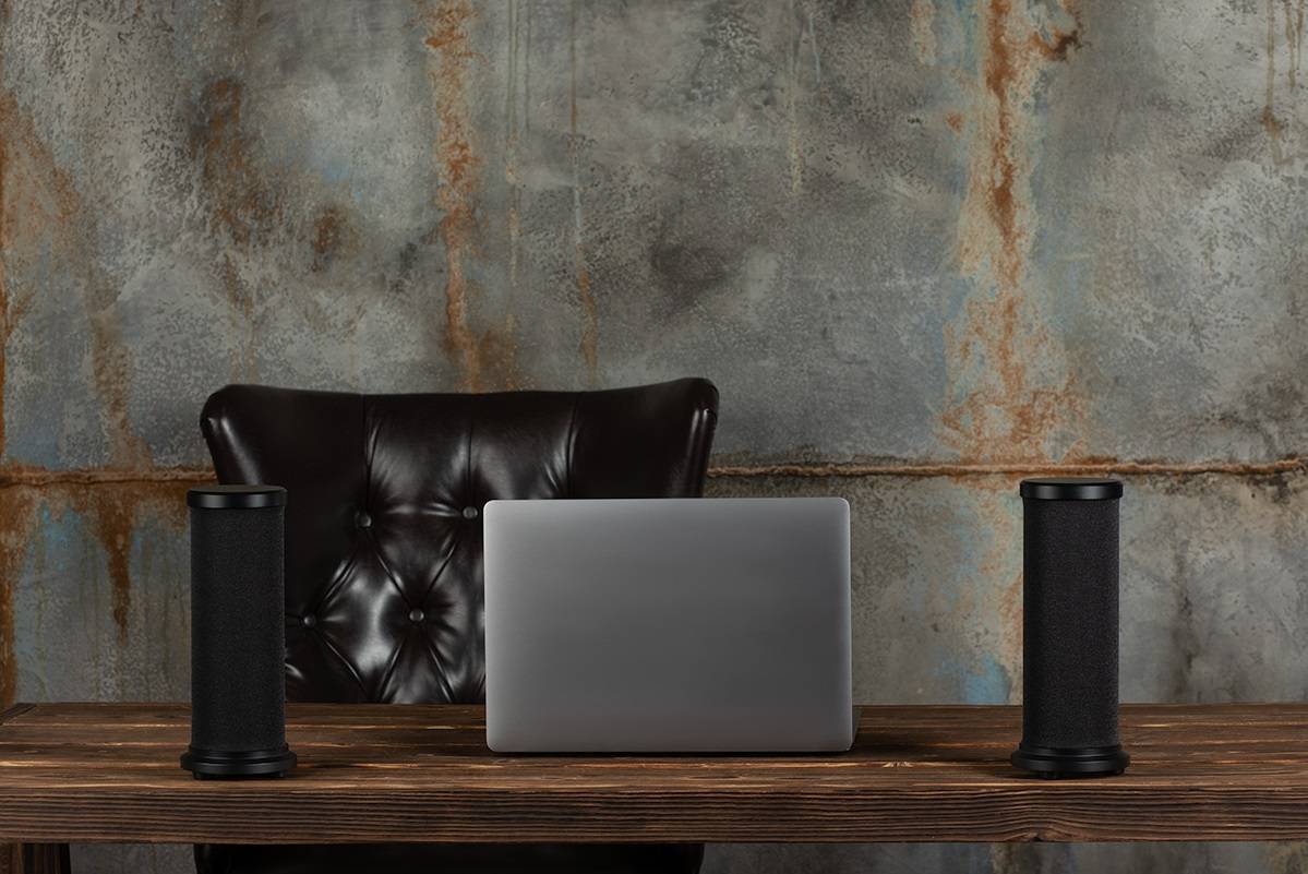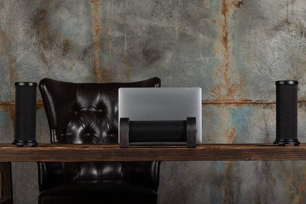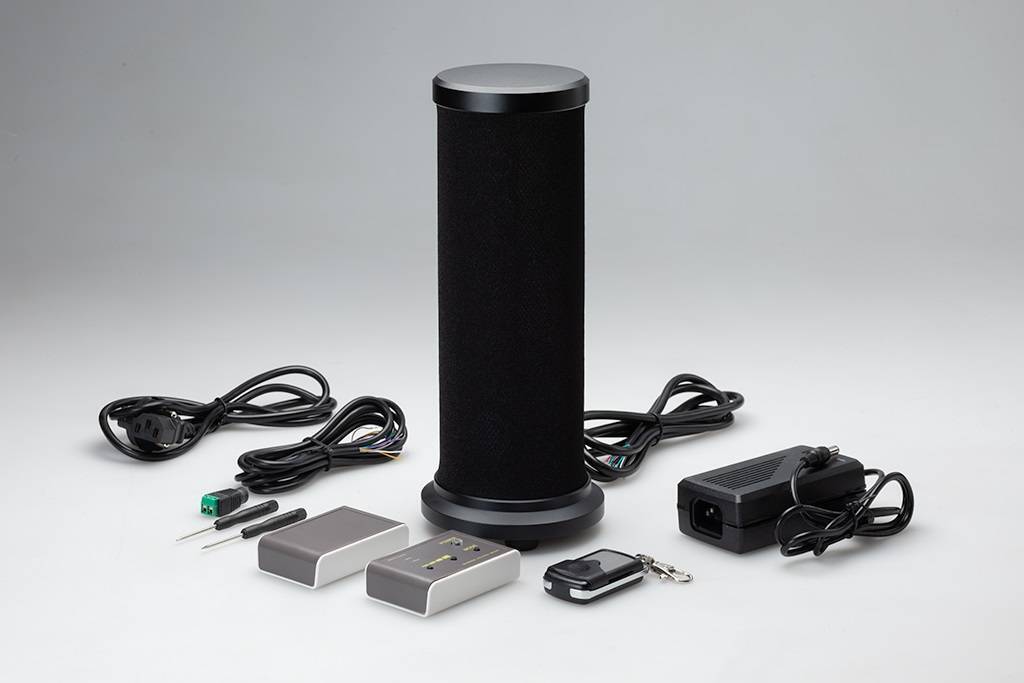 В отличии от предыдущих приборов полностью закамуфлирован под цилиндрические колонки, со стороны невозможно определить, что в них встроены пьезо излучатели. Каркас обтянут акустической тканью. Для удобного подключения из колонки выходит двух метровый многожильный провод. В комплекте поставки присутствуют все необходимые для установки и подключения материалы.