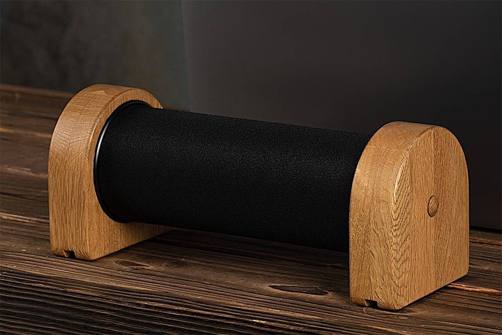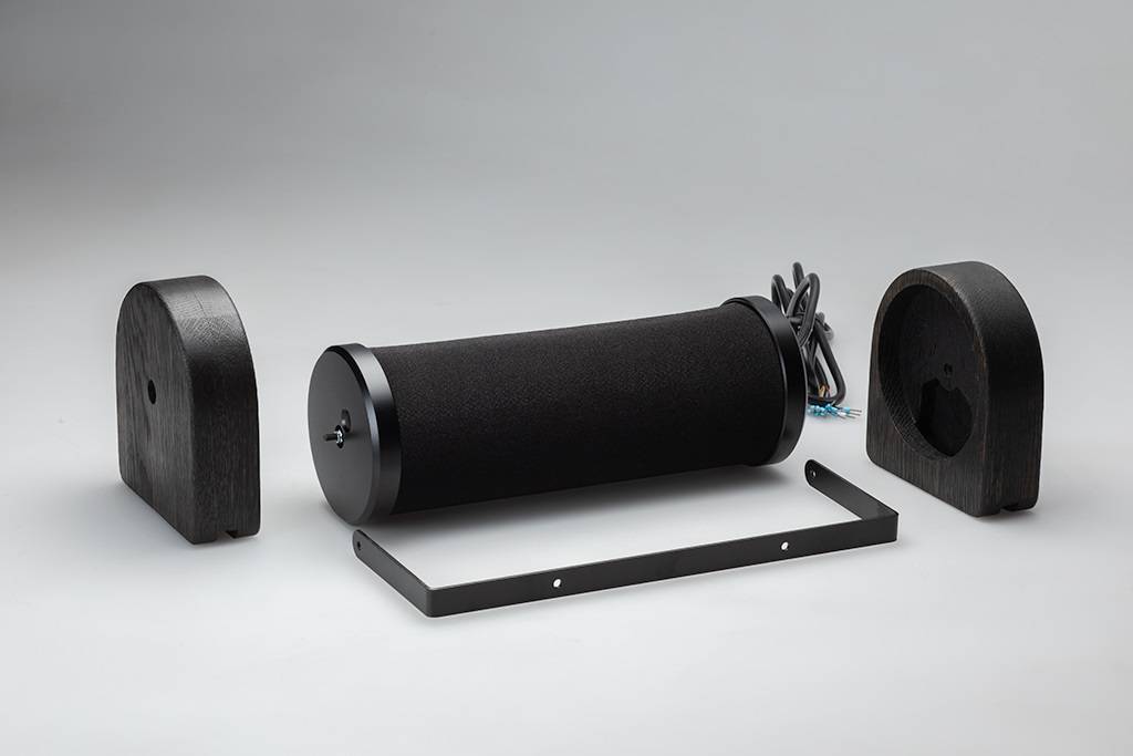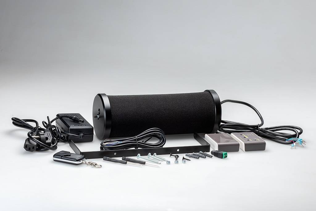 В отличии от предыдущих приборов полностью закамуфлирован под цилиндрические колонки, со стороны невозможно определить, что в них встроены пьезо излучатели. Каркас обтянут акустической тканью. Тип ткани можно выбрать при заказе из шести стандартно применяемых. Для удобного подключения из колонки выходит двух метровый многожильный провод. В комплекте поставки присутствуют все необходимые для установки и подключения материалы.