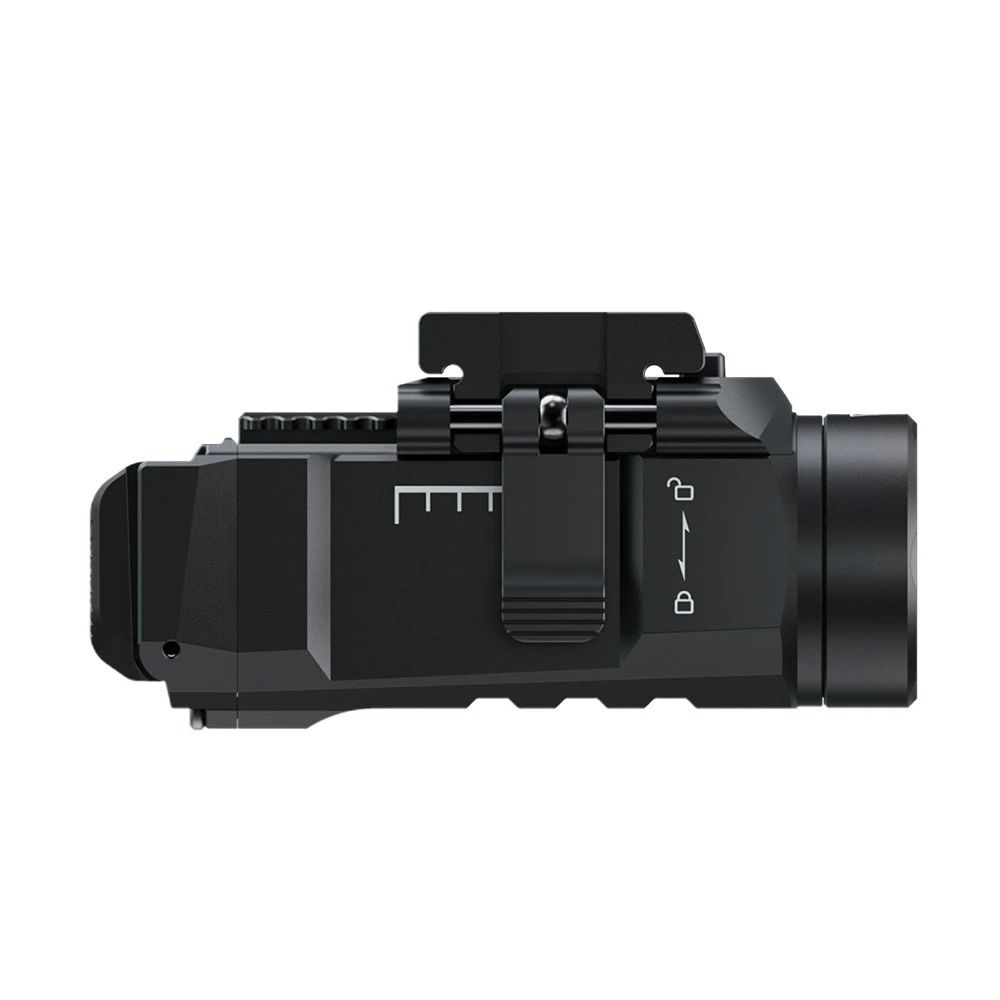 Модульная быстросъемная направляющая с рычагом QD позволяет быстро и удобно устанавливать устройство на планки 1913 и GL, что дает возможность использовать фонарь с различными типами снаряжения. Благодаря модульной скользящей конструкции крепления фонарь можно двигать вперед и назад для фиксации в оптимальном положении.