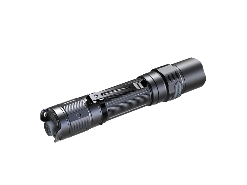 Fenix PD35R имеет классический тип управления для тактических фонарей — с помощью хвостового переключателя, который облегчает пользователю доступ к функционалу устройства. Переключатель состоит из пары кнопок разных габаритов и тактильной текстуры поверхности, исключая риск спутать кнопки в кромешной темноте.