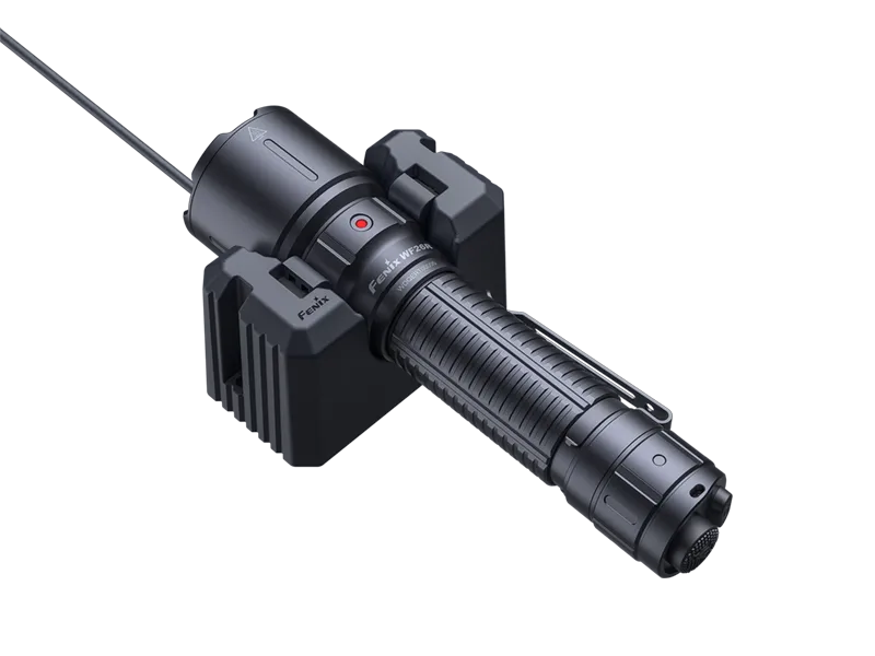 Основная особенность фонаря Fenix WF26R - это наличие специальной магнитной подставки, благодаря которой он хранится и подзаряжается. Съемный кабель, который идет в комплекте, гарантирует пользователю, что его фонарь будет готов к применению в любой момент. Крепить подставку можно на стене, столе или в автомобиле.